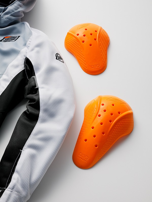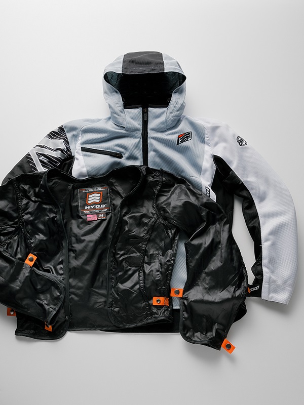 肩と肘にソフトでフレキシブルな驚異の衝撃吸収材、D3O®プロテクターを装備して、快適な着心地とハイスペックな安全性能を両立させています。また、背中には高反発タイプのウレタンフォームパッドを標準装備しています(ウレタンフォームパッドからHYZ902・D3O® VIPER STEALTHバックボーンプロテクターにアップグレードしてプロテクション性能を高めることも可能です)。D3O®プロテクターはいずれも欧州の厳しい安全基準「CE規格」をクリアしています。