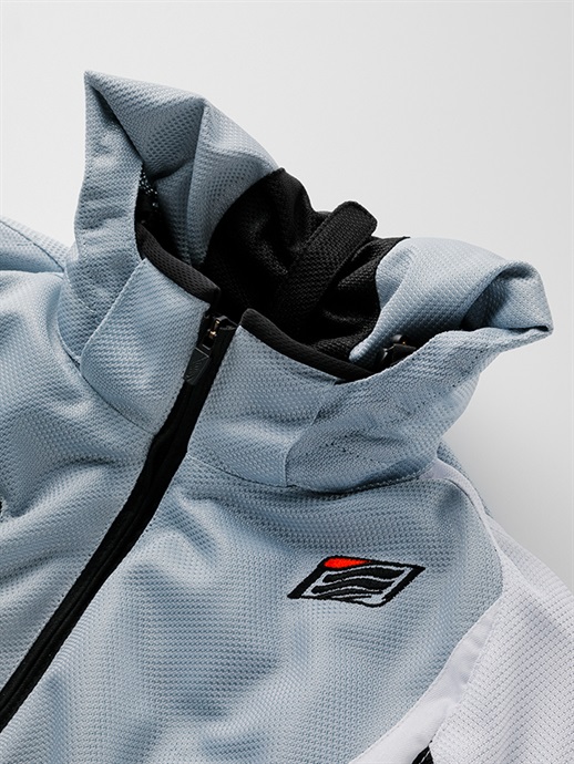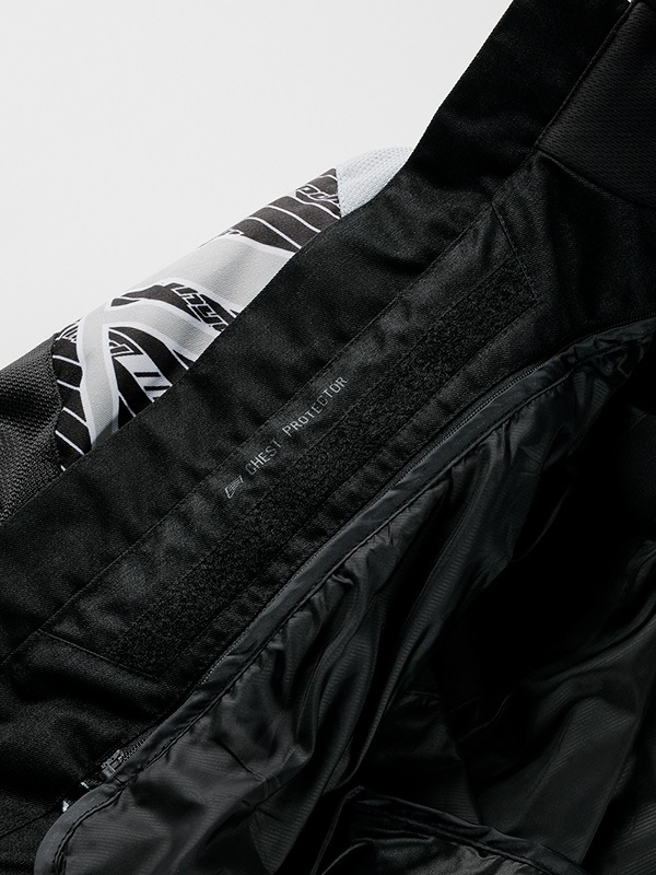 ジャケットの内側にHYOD D3O®チェストプロテクターを装着するアタッチメント(面ファスナー)を装備しています。ワンピースタイプのチェストプロテクターは2カ所で、ツーピースモデルは左右それぞれ1カ所で固定することができます。