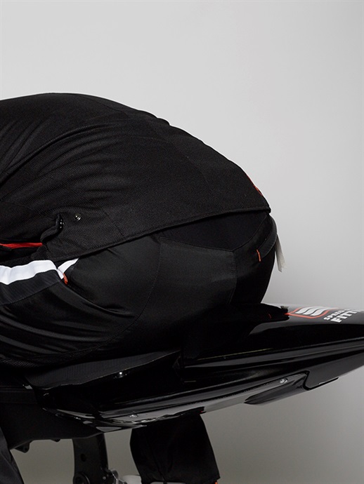 ジャケットとパンツをファスナーでジョイントするスポーツスーツシステムを装備しています。連結するファスナーの長さを共通にし、ジャケットとパンツが異なるサイズでもジョイントすることができます。ジャケットのめくれあがりを防ぎ、転倒時の安全性を高める効果があります。