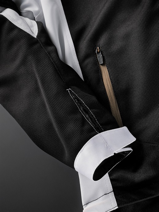高い通気性とソフトで軽量なテキスタイルメッシュ“anapsy(アナプシー)”メッシュを採用し、軽くソフトな着用感と高級感を実現しました。両腕の外側には安全面を考慮してテキスタイル生地を使っています。