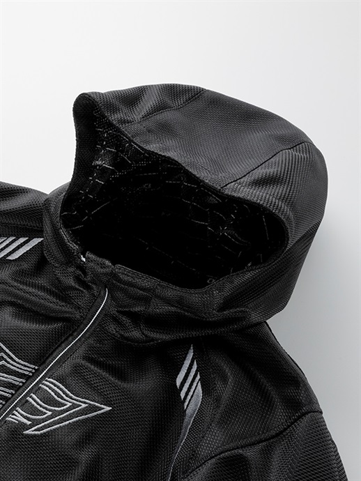 高速走行などによりフード部分のバタつきが気になる場合は、フード本体をコンパクトにたたんでおくことができます。高速道路などの走行シーンや自分の好み、TPOに応じて使い分けることができるのもフーデッドスタイルの特徴のひとつです。
