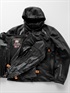 フロントファスナーをフードの高さまでジップアップできる仕様になっています。