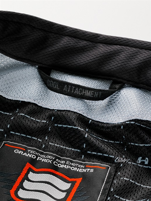 ジャケットの下に身につけるエアバッグウエア“AIR-BOOST”。日本人専用設計で、安全性能をアップグレードできます。