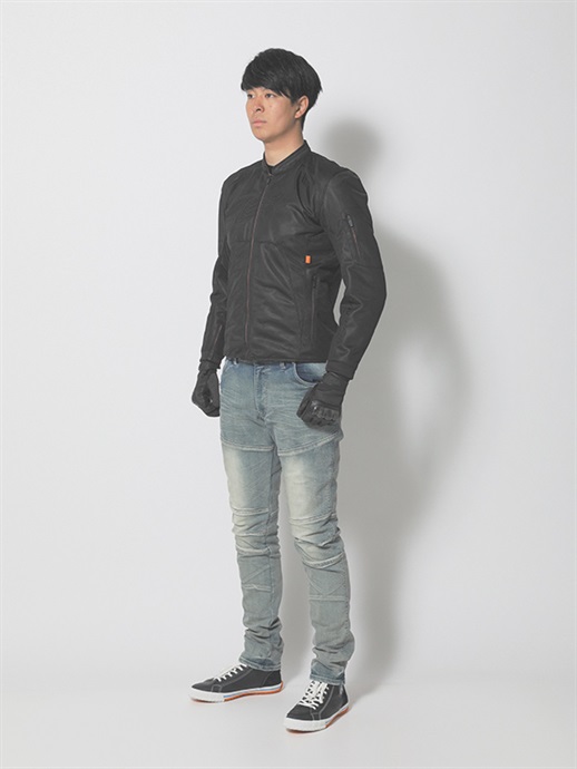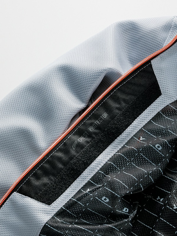 HYOD AIR-BOOSTはHYODが日本人の体型に合わせて独自に開発した専用パターンとストレッチ素材を組み合わせることで、ライディング時のフィット感にすぐれ、動きやすくて着ていることを感じさせない着用感となっています。サイズはSサイズから3Lサイズを取り揃え、体型に合うサイズをお選びいただくことでより安全性は高くなります。また、本体前面にエアスルーホールを配置するほか、フロントとサイドに通気性と伸縮性のあるメッシュパネルを採用。さらに本体裏地には通気性にすぐれるダブルラッセルを採用することで内側の蒸れを軽減し快適性を実現しています。レザーウエアからテキスタイルウエアまで、自分好みのアウタージャケットの下に着用できるHYOD AIR-BOOSTで安全性能をアップグレードできます。