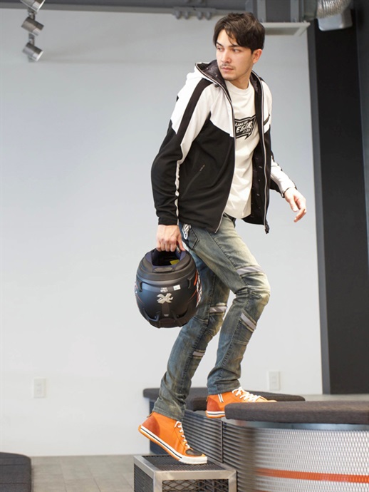 このモデルは、ジャケットとしての完成度が非常に高く、ベーシックスポーツを意識したスタイルやデザインはとても上質。幅広い着回しができるので車種を選ばず、どんなシーンでもベストマッチします。