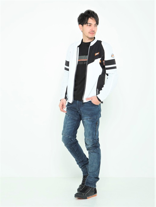 左胸のHYODクレストロゴやアシンメトリーの切り替えデザイン、両腕のダブルラインがアクセントとなり見事にHYOD-STYLEを表現したこのモデルは、「もっとストリートで快適にサマーライディングを楽しみたい。」というライダーにおすすめのモデルです。