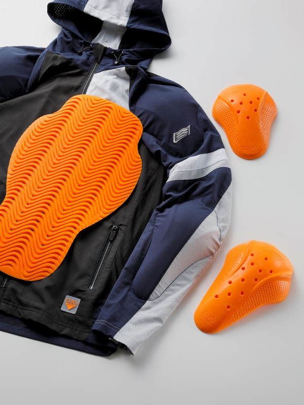クーリングストレッチ素材とテクノファインメッシュをハイブリッドした、HYOD UCHIMIZU(ウチミズ)シリーズのサマーシーズンパーカです。メインマテリアルのクーリング素材が汗を素早く吸収し、蒸発を加速させて身体をクールダウン、身体の動きに追従する適度なストレッチ性と高いUVカット、テクノファインメッシュのエアインテーク効果がサマーシーズンの快適なライディングをサポートします。肩と肘には装着感と耐衝撃性に優れたHYODオリジナルD3O®プロテクター、脊椎には追従性が高いD3O®バックボーンプロテクター“VIPER STEALTH(CE規格LEVEL1をクリア)”を搭載してウエア全体のプロテクション性能を高めています。日焼けを防ぎ、冷感効果のあるフードは、丸めて留めるなど、シーンに応じて使い分けすることができます。
