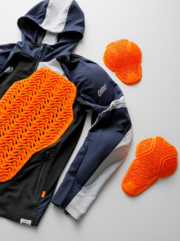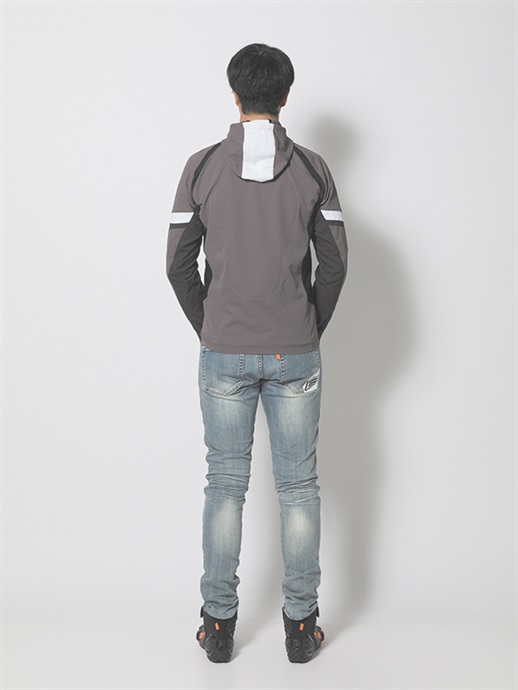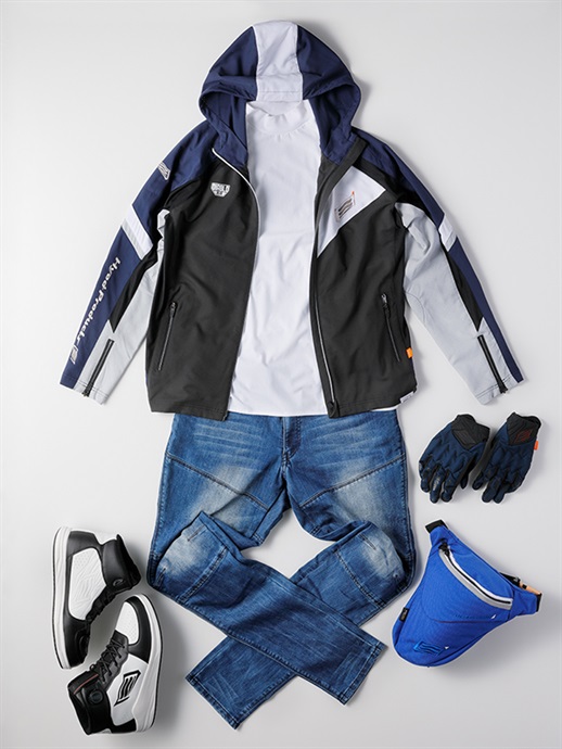 HYOD AIR-BOOSTはHYODが日本人の体型に合わせて独自に開発した専用パターンとストレッチ素材を組み合わせることで、ライディング時のフィット感にすぐれ、動きやすくて着ていることを感じさせない着用感となっています。サイズはSサイズから3Lサイズを取り揃え、体型に合うサイズをお選びいただくことでより安全性は高くなります。また、本体前面にエアスルーホールを配置するほか、フロントとサイドに通気性と伸縮性のあるメッシュパネルを採用。さらに本体裏地には通気性にすぐれるダブルラッセルを採用することで内側の蒸れを軽減し快適性を実現しています。レザーウエアからテキスタイルウエアまで、自分好みのアウタージャケットの下に着用できるHYOD AIR-BOOSTで安全性能をアップグレードできます。