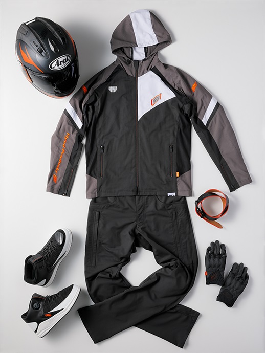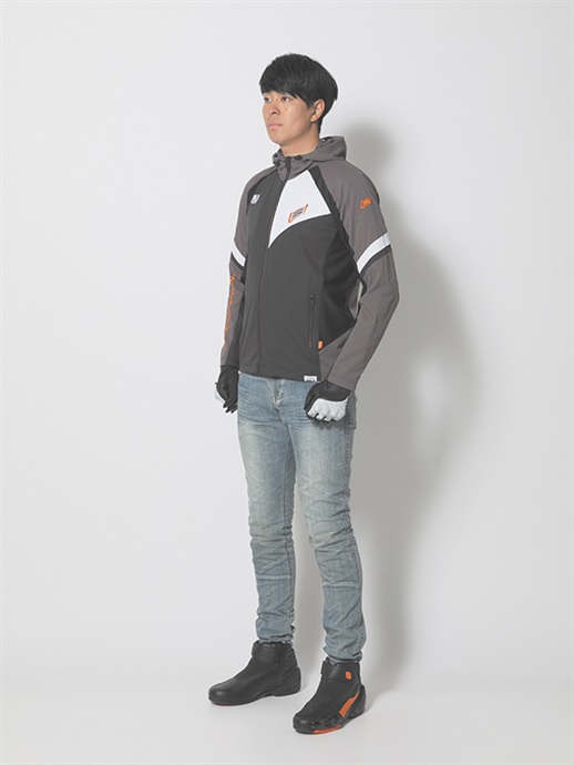 ジャケットの下に身につけるエアバッグウエア“AIR-BOOST”。日本人専用設計で、安全性能をアップグレードできます。