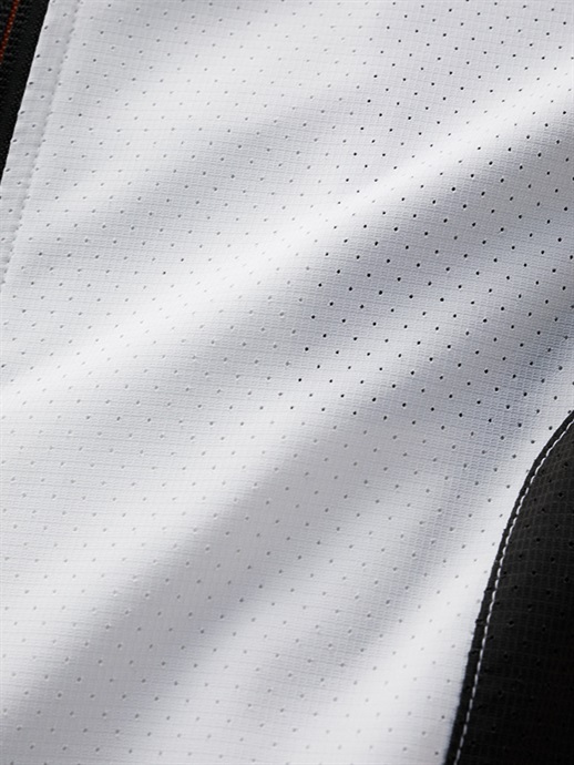サマーライドの涼しさを追求したSPEED-iDデザインのUCHIMIZU(ウチミズ)・クーリングドライジャケットです。肩と肘には新設計の薄く柔らかなエアースルー構造のD3O® Diablo™プロテクター、背中には“D3O® BP4 L1”プロテクター(どちらもCE規格・LEVEL1認証)を新たに採用しています。素材のUCHIMIZUは、発生した汗を肌側の繊維が素早く吸収し、衣服内の熱を奪って温度を抑え、さらにパンチングを施すことで通気をアップさせ、衣服内をより快適にしています。前身と両袖にテキスタイルウエアで好評の“SPEED-iD”デザインをプリントし、HYODクレストやST-Xロゴ、HYOD STYLEやSPEED STYLEのロゴがクールに華やかにレイアウトされています。ストリートライディング専用のST-Xパターンを、軽量でしなやかなUCHIMIZU生地の特性にあわせて部位ごとに細かく調整、ほどよいフィット感に仕上げています。