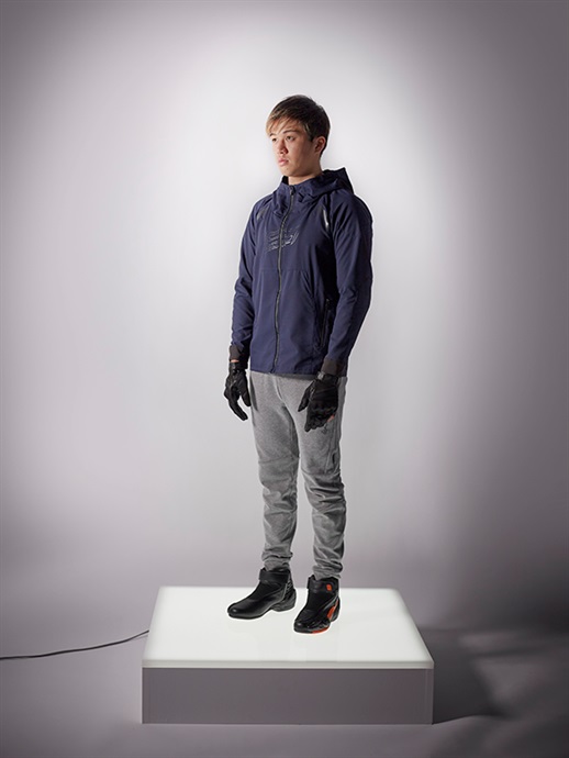 レーシングレザースーツのフラッグシップモデル“DYNAMIC PRO MINERVA D3O® ATHLETE SPEC”と同デザインのクレストマークを胸にプリントしています。