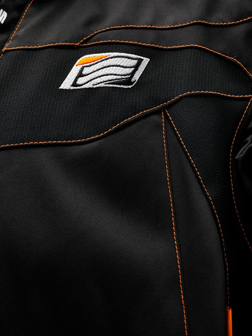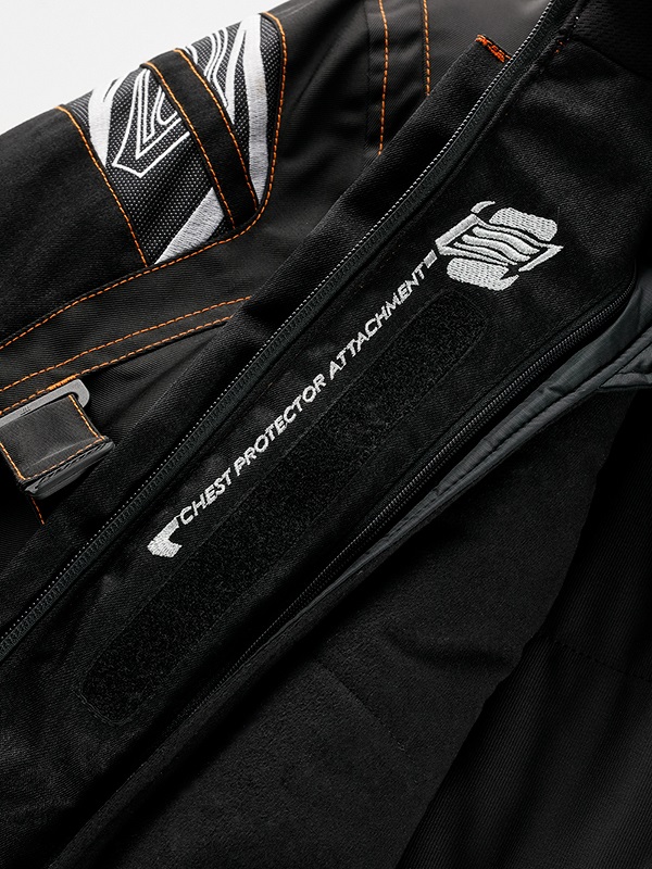 ジャケットとパンツをファスナーでジョイントするスポーツスーツシステムを装備しています。連結するファスナーの長さを共通にし、ジャケットとパンツが異なるサイズでもジョイントすることができます。ジャケットのめくれあがりを防ぎ、転倒時の安全性を高める効果があります。