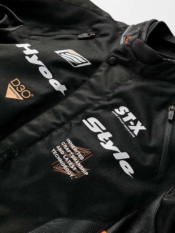 肩と肘にソフトでフレキシブルな驚異の衝撃吸収材、D3O®プロテクターを装備して、快適な着心地とハイスペックな安全性能を両立させています。また、背中には高反発タイプのウレタンフォームパッドを標準装備しています(ウレタンフォームパッドからHYZ902・D3O® VIPER STEALTHバックボーンプロテクターにアップグレードしてプロテクション性能を高めることも可能です)。D3O®プロテクターはいずれも欧州の厳しい安全基準「CE規格」をクリアしています。