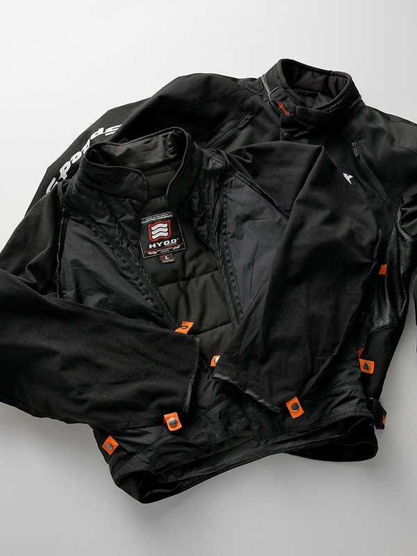 ジャケットに付属のウォームライナーを外して、アウターシェル×吸汗速乾インナーで。スポーツライディングでの発汗にも対応。
