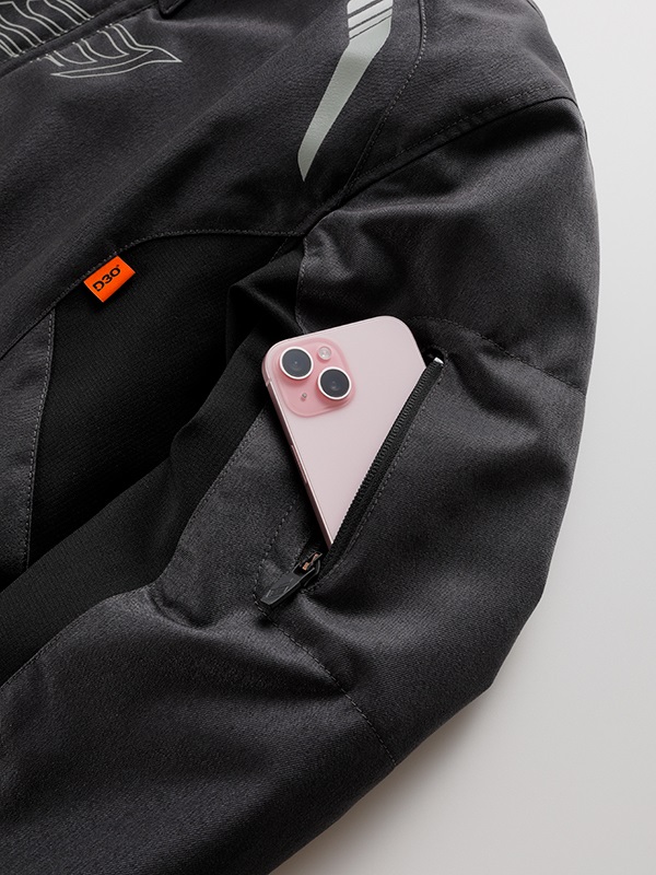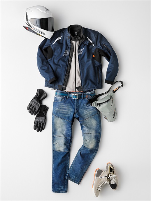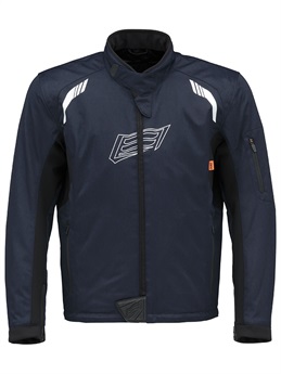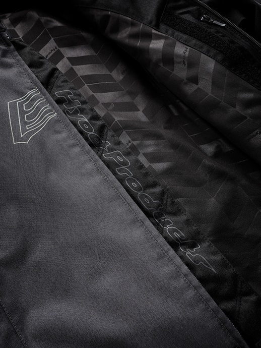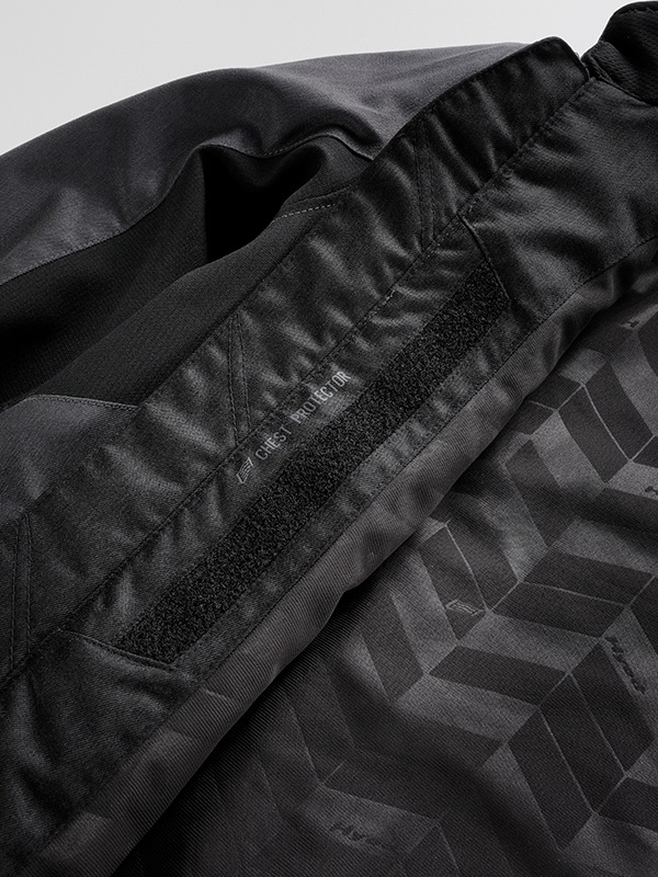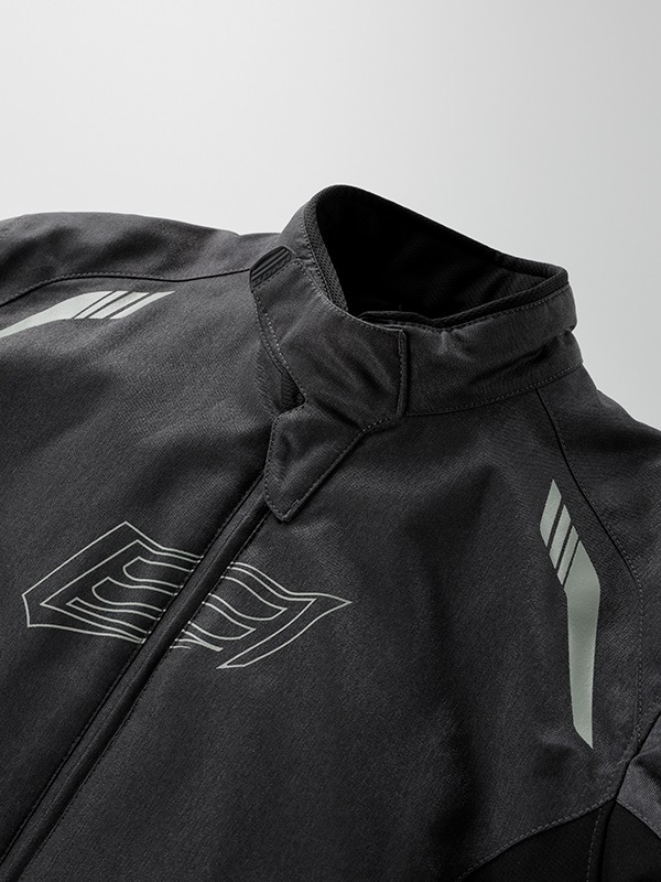 クレストマークを胸にレイアウトした“MINERVA”デザインのテキスタイルウエア。ストリートライディングの快適性とバイクから降りたときのスタイルを追求したNEW ST-Xパターンを採用。表地はしなやかなツイル生地、裏地は滑りを考慮して起毛トリコットの裏使いで仕上げています。肩と肘に装備された薄く柔らかなエアースルー構造のD3O® Diablo™プロテクターは、まるで着けていないかのような心地よい着用感を生みだしています。秋の入り口にはウエア単体で、季節の深まりとともにEVOKEシリーズのインサレーションウエアとのジョイントがオススメ(連結ボタンを装備)。襟まわりは低めのスタンドネック。すっきりとしたシンプルなルックスのテキスタイルウエアに仕上げています。