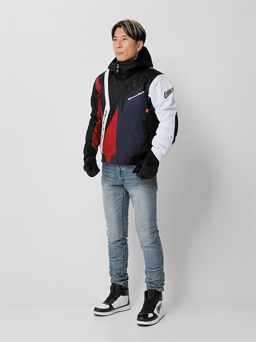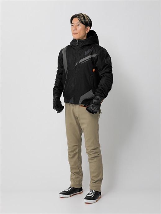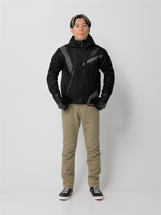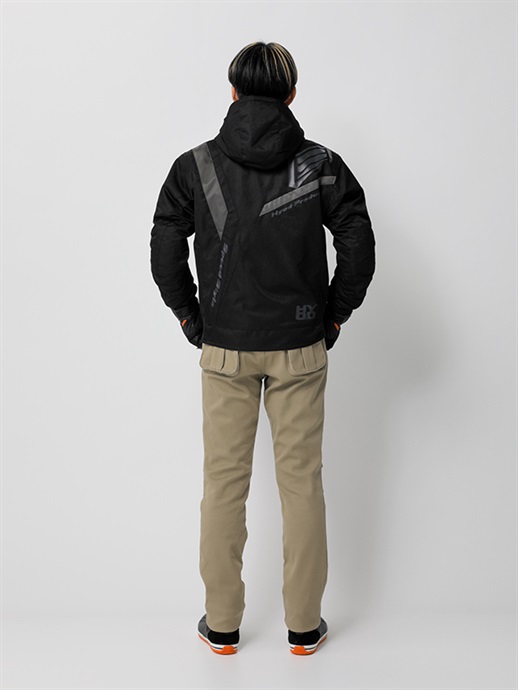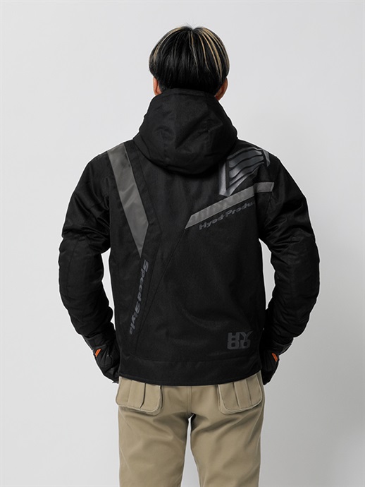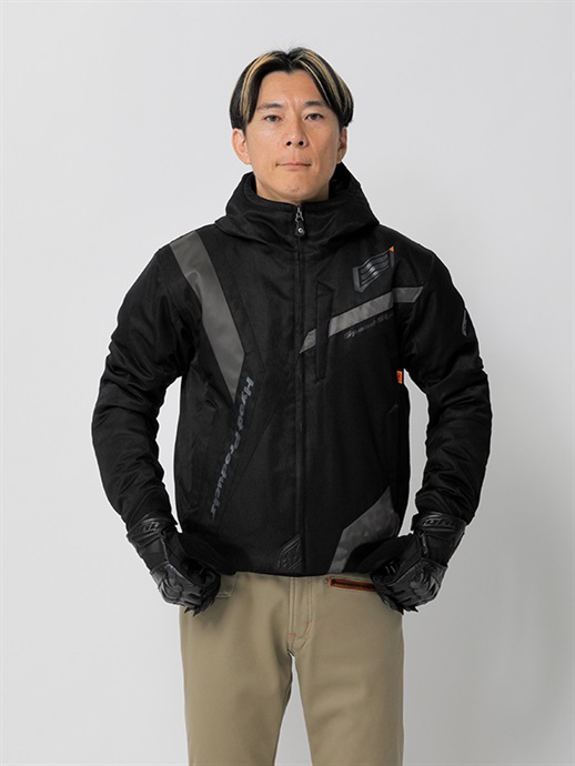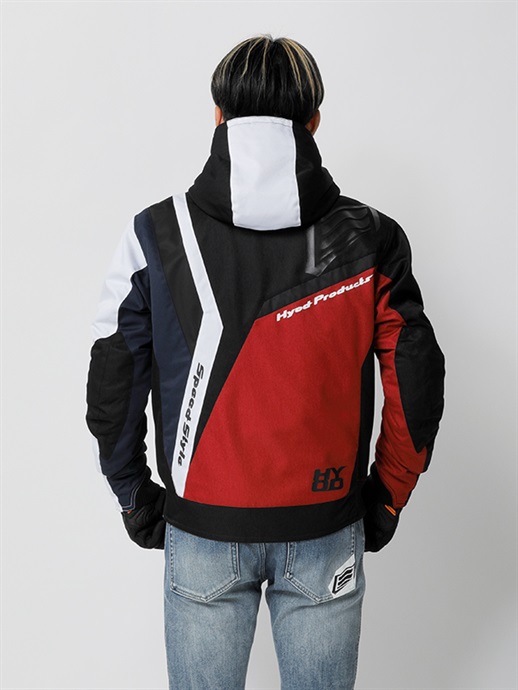 HYODらしさをシンボリックなデザインで表現したブランニュー・テキスタイルウエア。リラックスフィットのほどよいゆとりを持たせたフォルムと斬新な切り替え、配色の妙が、このウエアの斬新さとオリジナリティを映し出しています。表素材はなめらかで着心地の良さを生みだすポリツイル、身頃と袖にはポリエステル中綿をインサートし、ロゴ入りトリコットを採用して保温性を高めています。防水・透湿ベンチレートエアー防水ライナーを装備。袖口と裾はリラックスした着用感を生み出すリブニット仕様。ネックまわりは防寒性の高いフーデッドスタイルに仕上げています。肩と肘には心地よさを損なわないソフトでフレキシブルなD3O® Diablo™プロテクターを採用(どちらもCE規格・LEVEL1認証)。