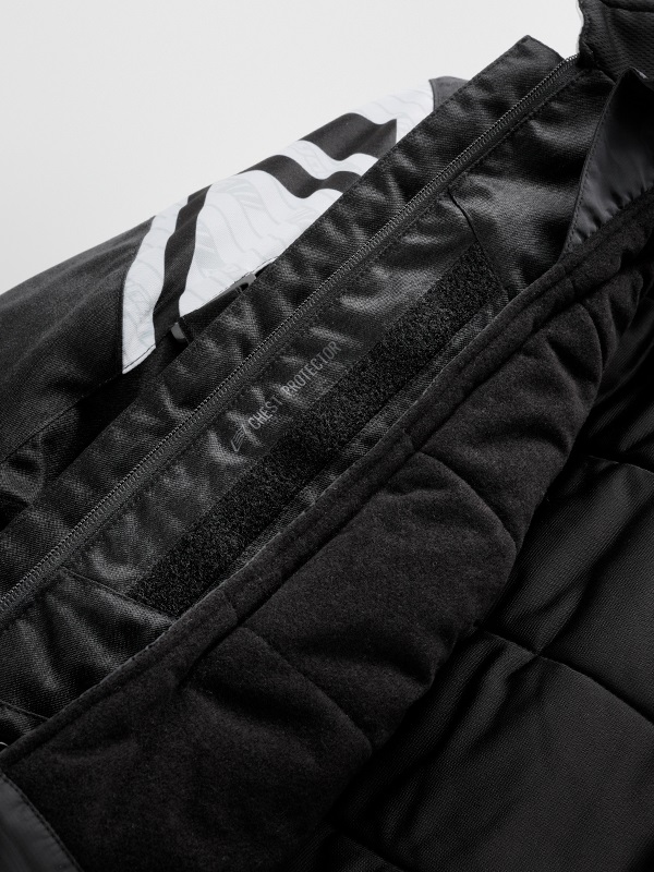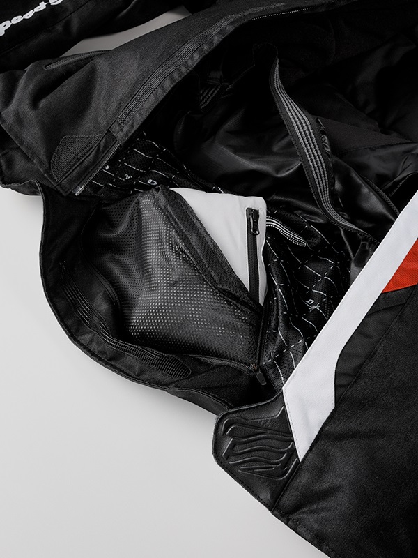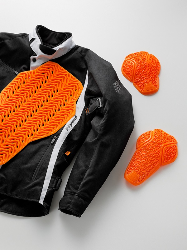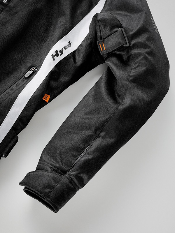 大胆な背中のグラフィックとアシンメトリーデザインが目を惹く“BACK-iD”デザインのテキスタイルウエア。ライディング時のフィット感を重視したHYOD独自のST-Xパターンを採用。表素材には着用感に優れたポリツイルを採用、防水・透湿ベンチレートエアー防水ライナーと起毛トリコットを使った着脱式のウォームインナーを装備。肩と肘には、CE規格レベル2認証のソフトでフレキシブルなD3O® Diablo™プロテクター、背中にはD3O® VIPER AIRバックボーンプロテクターを搭載しています(CE規格・認証)。EVOKEシリーズのインサレーションウエアと連結するスナップボタンやチェストプロテクターアタッチメントなど、拡張性を考慮したスペックも装備しています。
