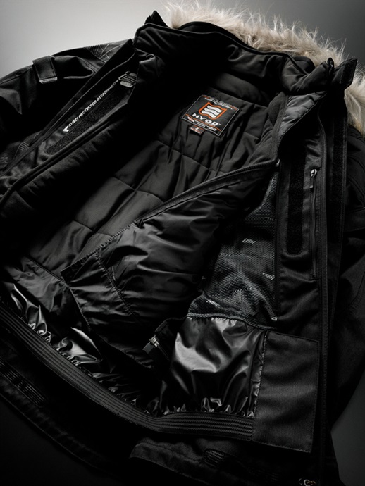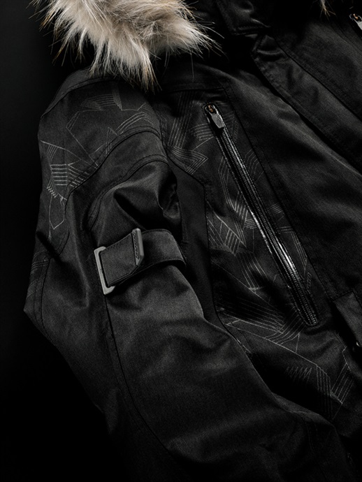 アシンメトリデザインで、カジュアル感覚いっぱいのデザインが特徴のST-W NEO-iD D3O®(ネオ・アイディー・ディースリーオー)。 アウタージャケットにはポリツイルを使い、柔らかくて包み込まれるような着心地が魅力です。表地と裏地の間には防水・透湿ベンチレートエアー防水ライナーをインサートするほか、本体裏地には吸湿・速乾性に優れたエアーメッシュを採用し、ジャケット内を快適に保ちます。 また、起毛トリコットを使ったインナージャケットは着脱式のため、その日の天候に合わせてアジャストも可能です。裾部にはストームガードも装備し、冷たい風の侵入を防ぎます。ウォームファー付のフードは着脱式。時にはフードを外してスポーティなライディングジャケットとしても楽しめます。上腕にはアジャスター、ウエストにはドローコードも装備していますので、スマートな着こなしをお楽しみいただけます。 プロテクターは肩とヒジにHYODオリジナルD3O®プロテクターを装備するほか、背中には軽量で装着感に優れたフォームパッドを採用。また、チェストプロテクターアタッチメントやHYODスポーツスーツシステムなど、スポーツライディグウエアとしてのスペックも充実しています。