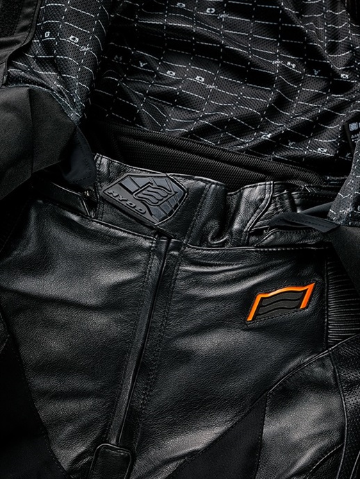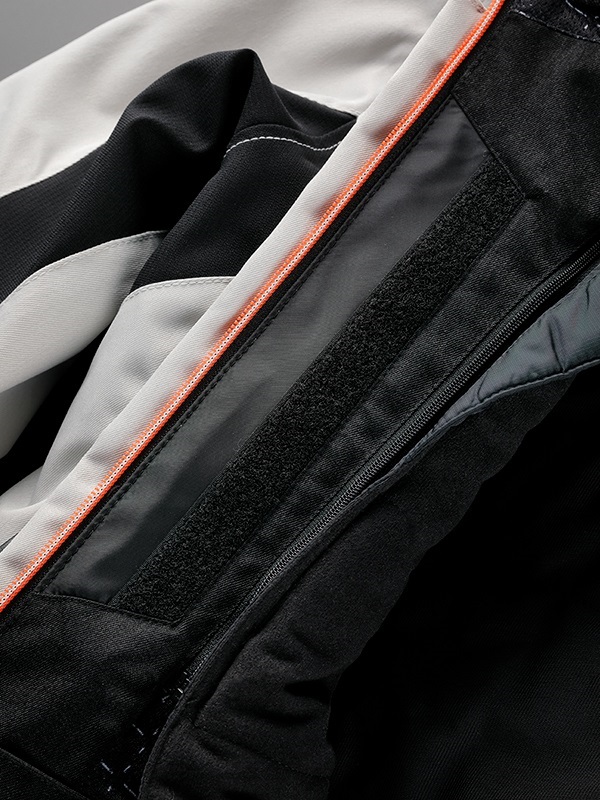 ジャケットとパンツをファスナーでジョイントするスポーツスーツシステムを装備しています。連結するファスナーの長さを共通にし、ジャケットとパンツが異なるサイズでもジョイントすることができます。ジャケットのめくれあがりを防ぎ、転倒時の安全性を高める効果があります。