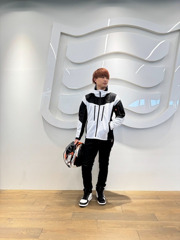 ジャケットの下に身につけるエアバッグウエア“AIR-BOOST”。日本人専用設計で、安全性能をアップグレードできます。