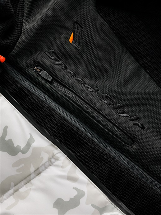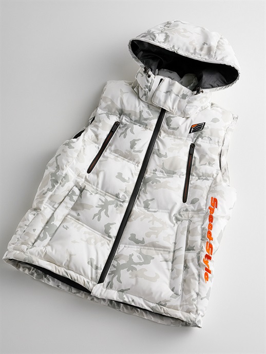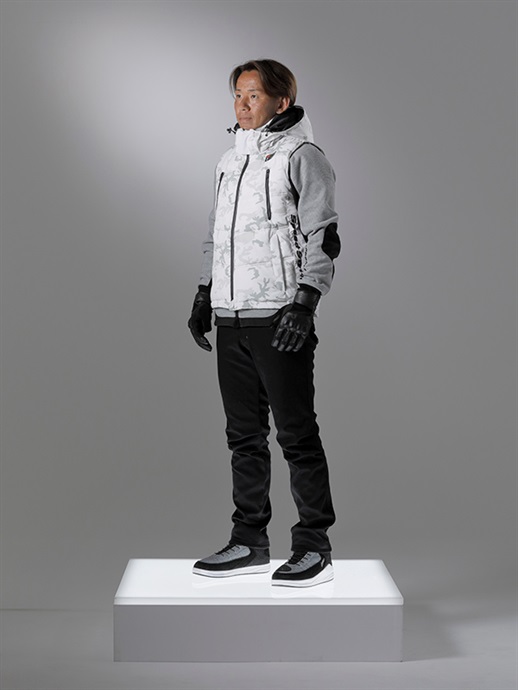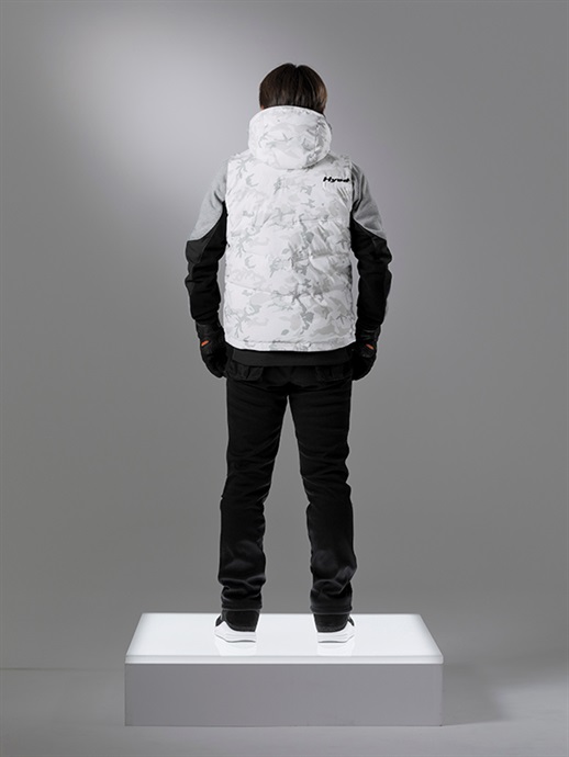 ベスト部分には中綿をインサートしたしなやかなテキスタイル素材、ジャケット部分にはワッフル生地に防風フィルムと起毛トリコットをボンディングした3レイヤーの防風・防寒素材を採用しています。