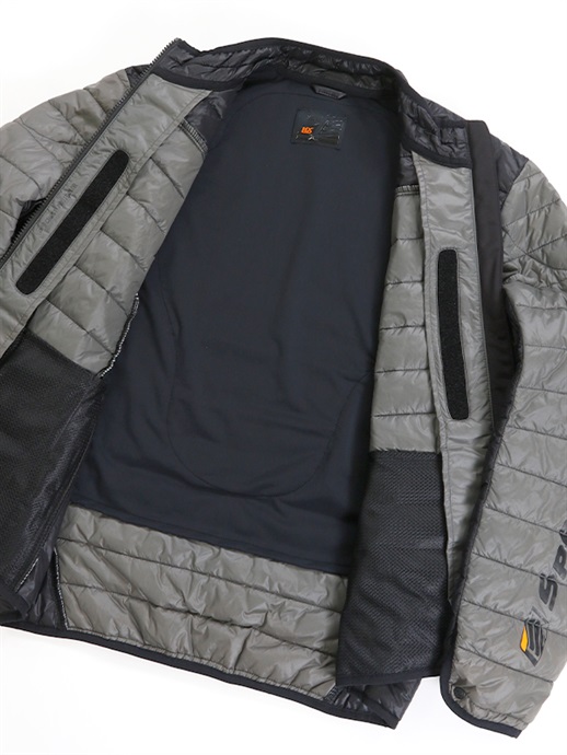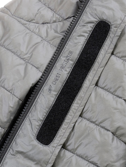 軽く保温性に優れたポリエステル中綿をインサートした、アウターウエアとしても、ミドルレイヤーとしても着用可能なユーティリティウエア。表地にはシレー加工を施した防風タフタを採用。肩や肘、脊椎にD3O®プロテクターを装備したり、胸にチェストプロテクターを装着したりして、安全性をアップグレードさせることができます(オプション・CE規格認証)。ミドルレイヤーとして着用する際は、袖口のスナップボタンを使ってアウターウエアとのジョイントも可能です。