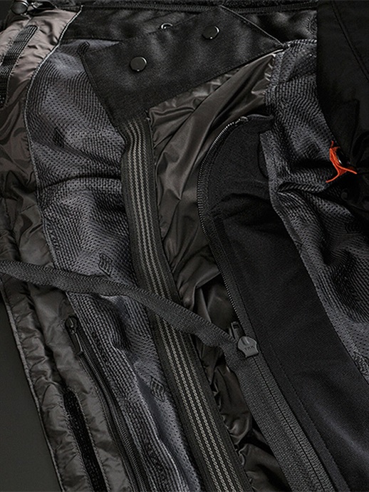 アシンメトリデザインで、カジュアル感覚いっぱいのデザインが特徴のST-W NEO-iD D3O®(ネオ・アイディー・ディースリーオー)。HYODウィメンズレザースーツからフィードバックしたシルエットが特徴のウィメンズモデルです。 アウタージャケットにはポリツイルを使い、柔らかくて包み込まれるような着心地が魅力です。表地と裏地の間には防水・透湿ベンチレートエアー防水ライナーをインサートするほか、本体裏地には吸湿・速乾性に優れたエアーメッシュを採用し、ジャケット内を快適に保ちます。 また、起毛トリコットを使ったインナージャケットは着脱式のため、その日の天候に合わせてアジャストも可能です。裾部にはストームガードも装備し、冷たい風の侵入を防ぎます。ウォームファー付のフードは着脱式。時にはフードを外してスポーティなライディングジャケットとしても楽しめます。 上腕にはアジャスター、ウエストにはドローコードも装備していますので、スマートな着こなしをお楽しみいただけます。プロテクターは肩とヒジにHYODオリジナルD3O®プロテクターを装備するほか、背中には軽量で装着感に優れたフォームパッドを採用。また、チェストプロテクターアタッチメントやHYODスポーツスーツシステムなど、スポーツライディグウエアとしてのスペックも充実しています。