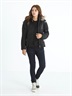 女性らしい柔らかなシルエットが特徴。ウォームファーフードを採用したオシャレなパーカウエア。