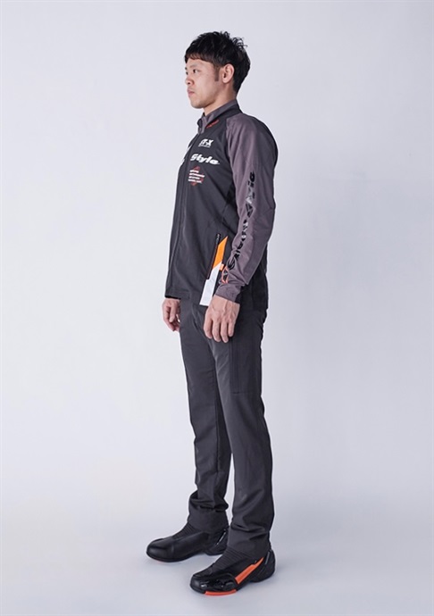 太もも部分に走行風を取り入れるためのベンチレーションファスナーを装備しています。外気温に応じてファスナーを開閉し、フレッシュエアーを導入して、夏場のライディングを快適にします。