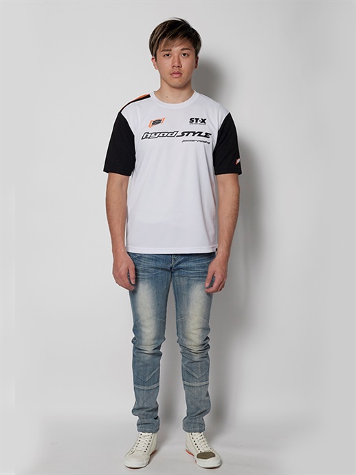 サマーシーズンのライディングシーンに映える、スポーツマインドあふれるHYOD SPEED-iDデザインのプリントが特徴です。
