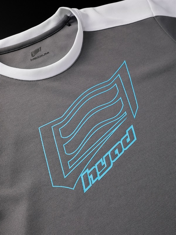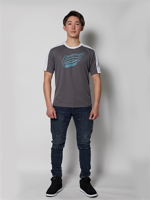 サマーシーズンのライディングシーンに映える、スポーツマインドあふれるHYODクレストマークのグラフィックが特徴です。