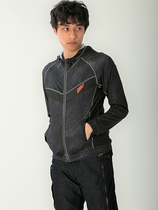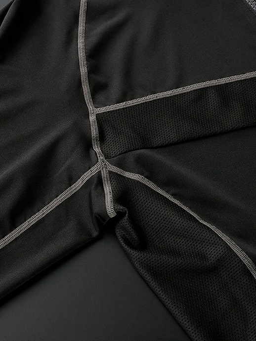 優れた吸汗速乾性とUVカット特性をもつ、ライトなストレッチ素材を採用。発汗により発生する水分を吸収・拡散・放出させ、その際に発生する気化熱による冷感作用で素肌はいつもドライ感覚。※比較的ゆとりのあるサイズ感での仕上りとなります。モデル:身長180cm B83.5 W71 H89 / 着用サイズ:L