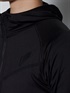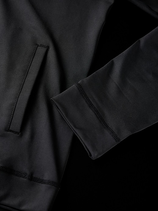 UVカットと優れた吸汗速乾性をもつ肌触りのよいストレッチ素材を採用しています。発汗によって発生する水分を効率よく吸い上げ、常にドライで快適な状態を保ちます。ジャケットの裏地との相性の良さ(ひっかかりがなく、すべりやすい)もこのマテリアルの特性です。