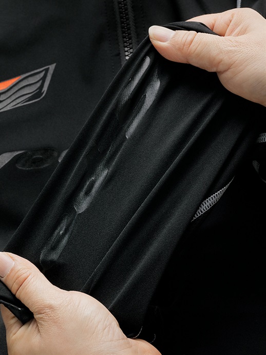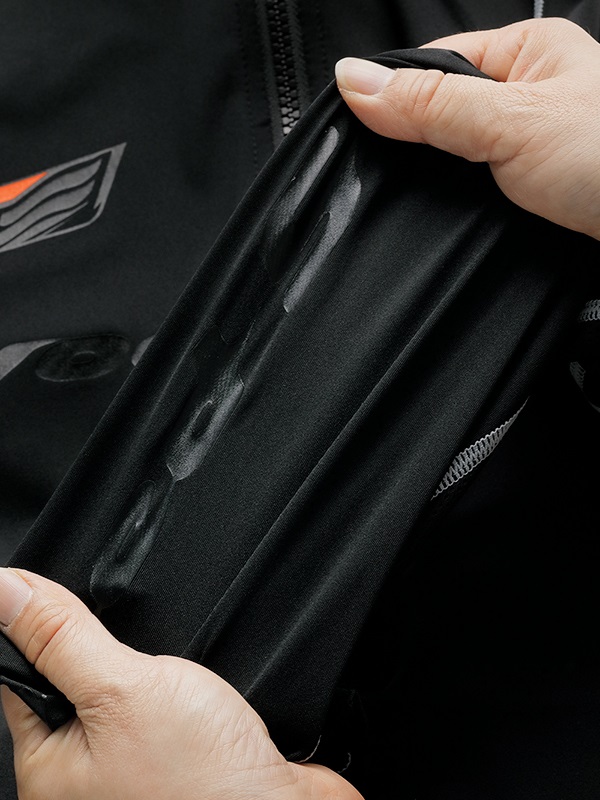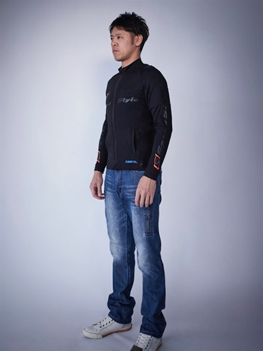 タイトすぎず、ほどよくフィットするサイズの設定と運動性にすぐれたパターンを採用しています。単体でも、ジャケットのインナーウエアとしても着られるモーターサイクル用ラッシュガードです。