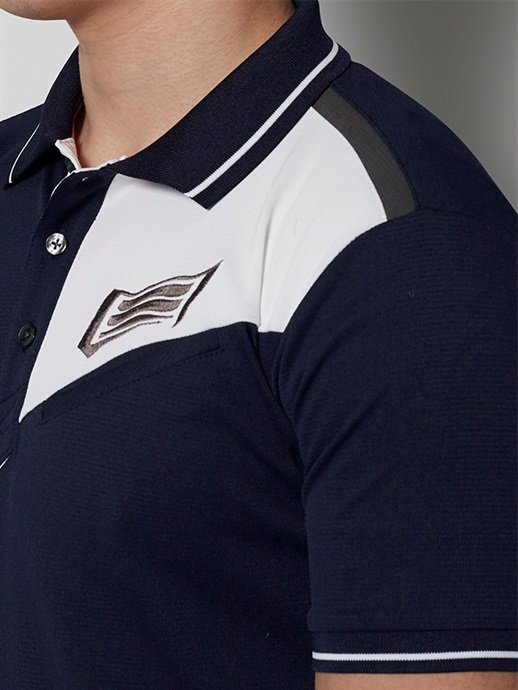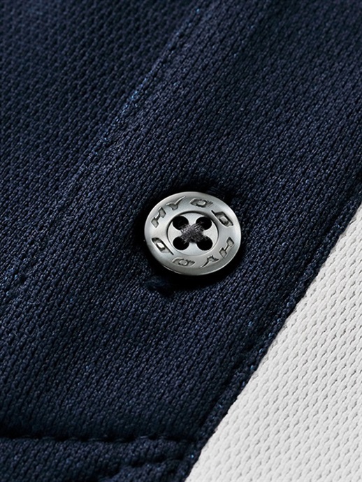 季節限定生産 ショルダーにHYOD刺繍ロゴをあしらったアシンメトリーデザインです。心地よい肌触りのトリコット生地を採用しました。左胸にポケットを配置し、ボタンにはHYOD ロゴ入り。 襟や腕部分のコンビネーションラインが夏の爽やかな風合いを演出します。