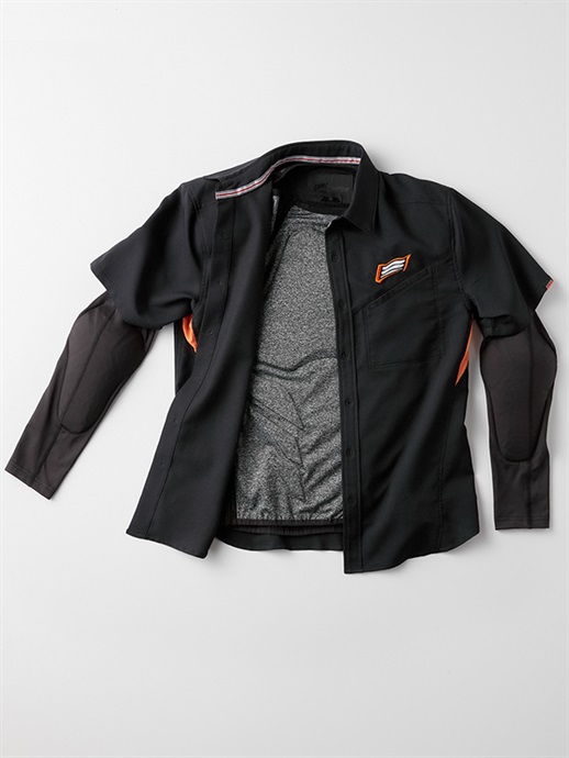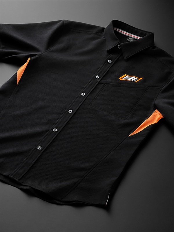 ライディングを考慮したHYODオリジナルパターンが、暑い夏に快適な着心地とライディングを実現します。両脇と背中には通気性に優れたメッシュ素材を採用することで、快適性を追求しました。左胸にはHYOD刺繍ロゴ、ボタンはHYODロゴが入り、細部にまでこだわったサマーシーズンのパフォーマンスアパレルです。