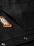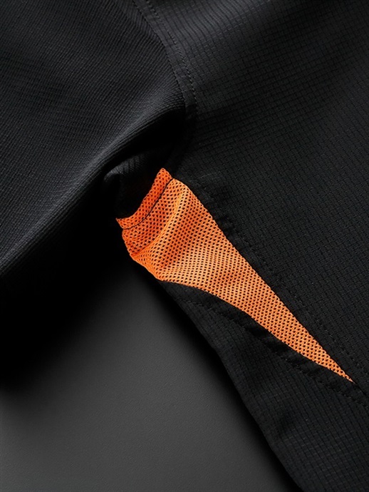 背中と脇下の切り替え部分にメッシュ素材を部分使いしています。左胸にクレストマークの刺繍とポケットを取り付けています。
