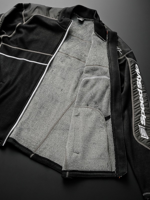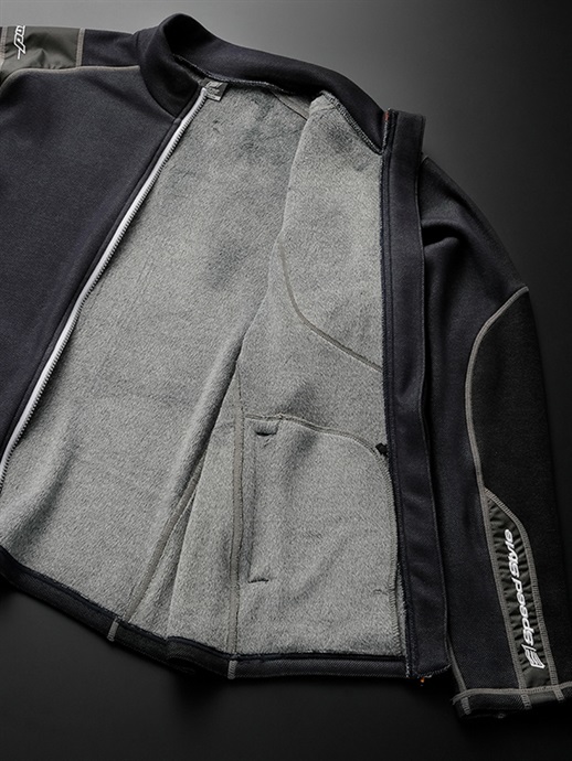 メイン生地はストレッチ性のある柔らかい風合いと保温性の高い裏シャギーを採用しています。薄手で蓄熱・保温性が高く、ジャケットの中に着ても着膨れせずに動きやすい、ウインターシーズンのレイヤリングには最適なアイテムです。