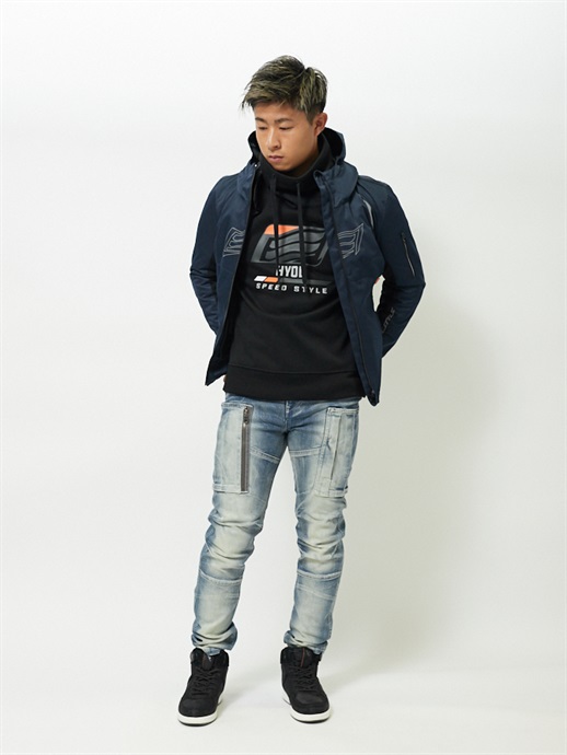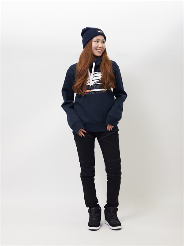スウェット素材に防風フィルムと肌ざわりにすぐれたシャギー素材をボンディングした、3レイヤーの防風性・防寒性・保温性にすぐれたHYODオリジナルのコンフォート素材を採用しています。