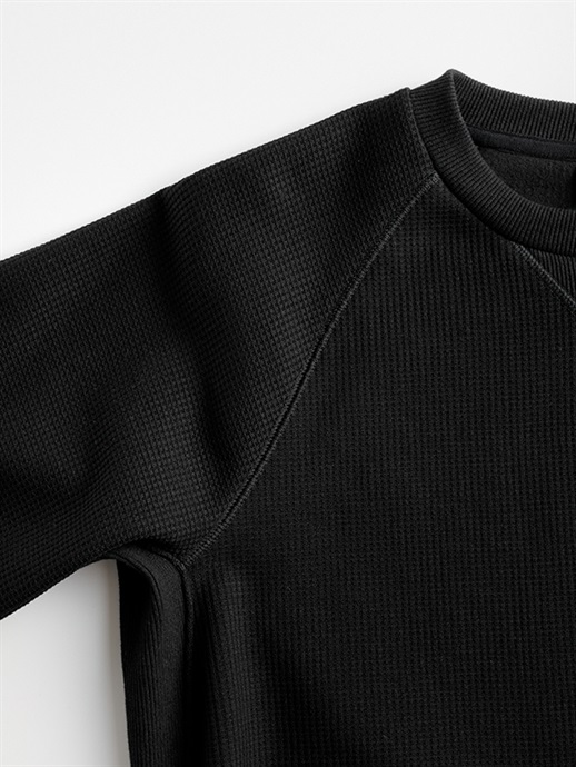 表地のワッフル生地と裏面のマイクロフリース素材に防風フィルムをボンディングしたHYODオリジナルのマテリアルを採用しています。見た目からは想像できないほどの“防風性”と“保温性”が盛り込まれています。