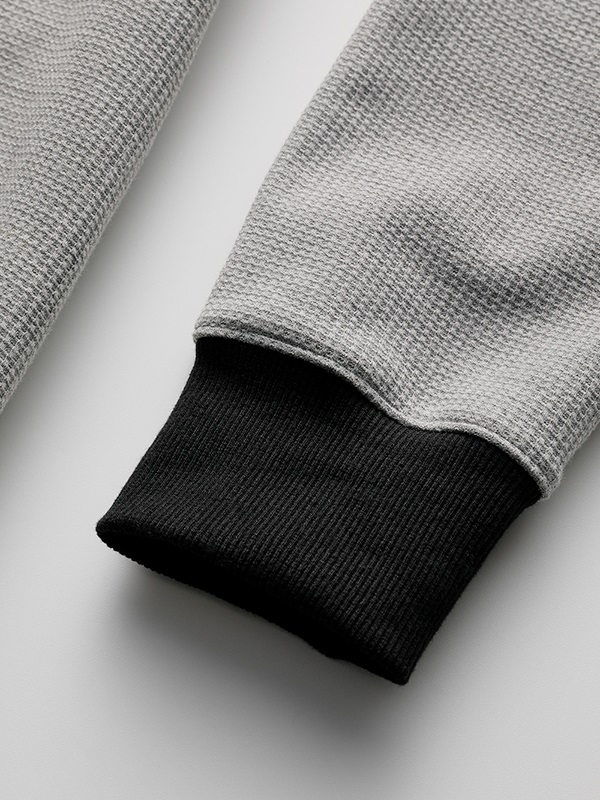 表地のワッフル生地と裏面のマイクロフリース素材に防風フィルムをボンディングしたHYODオリジナルのマテリアルを採用しています。見た目からは想像できないほどの“防風性”と“保温性”が盛り込まれています。