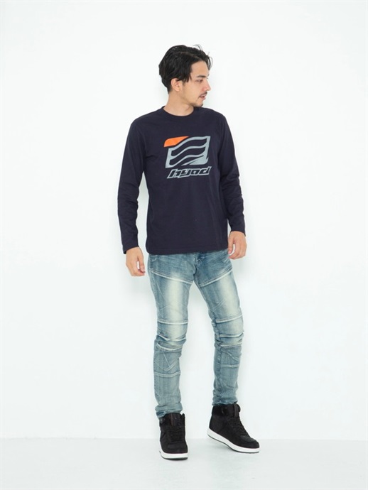 ほどよい厚みとスタンダードシルエットでシーンを選ばず着用できるロングスリーブTシャツ。ライディングウェアのレイヤリングアイテムとしてはもちろん、ストリートウェアとしても活躍するアイテムです。HYODフリークにはたまらないHYODのアイデンティティを象徴するクレストロゴをフロントへ配置しました。