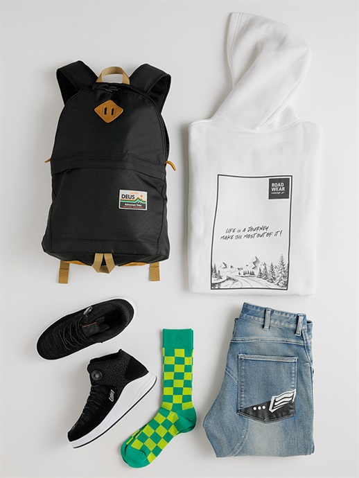 “LIFE is a journey(人生=旅)”マウンテン・ヴァージョンのフルジップパーカです。ブラックとホワイト、アースカラーのボディに、シンプルなブラックやホワイトのプリントカラーを組み合わせた、落ち着いた雰囲気の仕上りが特徴です。ボディはビッグシルエット、裏起毛仕様の10.0オンスです。