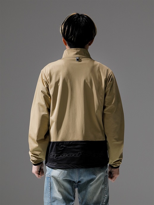 EVOKEインサレーションウエアは単体でも着用いただけますが、EVOKEアウターシェルとの組み合わせがより効果的です。アウターシェルとは袖口やネック部分にあるプラホックで連結することができますので、一体感のある着用感を得ることができます。また、アウターシェル側にプロテクターを装着することができますので、安全性も高まります。EVOKEアウターシェルは表地と裏地の間に耐水・透湿素材をボンディングした3レイヤー生地を採用することで、簡易防水性を備えていま。インサレーションウエアとの組み合わせで幅広い気温に対応することが可能となります。