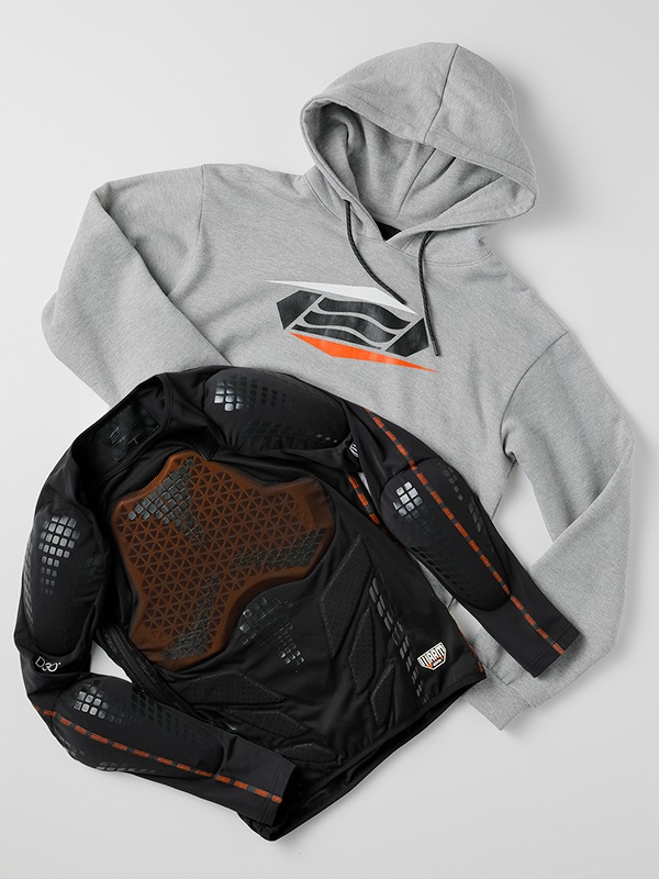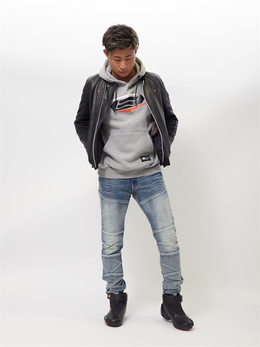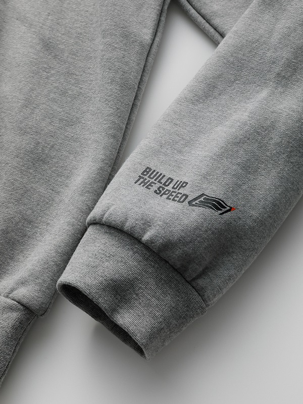 フロントに、デザインアレンジした “クレストマーク”のプリントを施しています。3つのカラーを組み合わせたデザインです。左袖には“BUILD UP THE SPEED”とクレストマークをワンポイントでプリントしています。