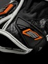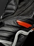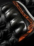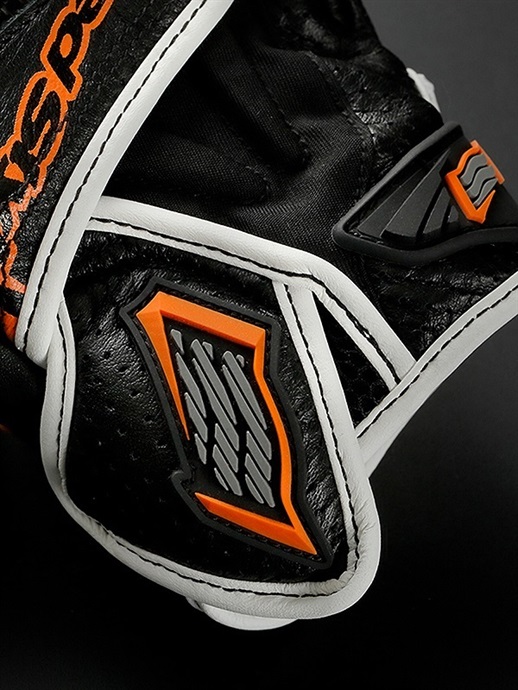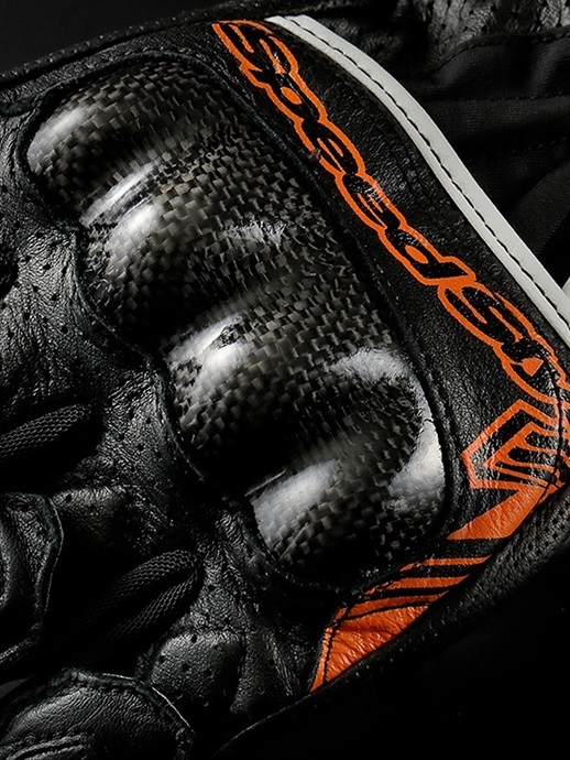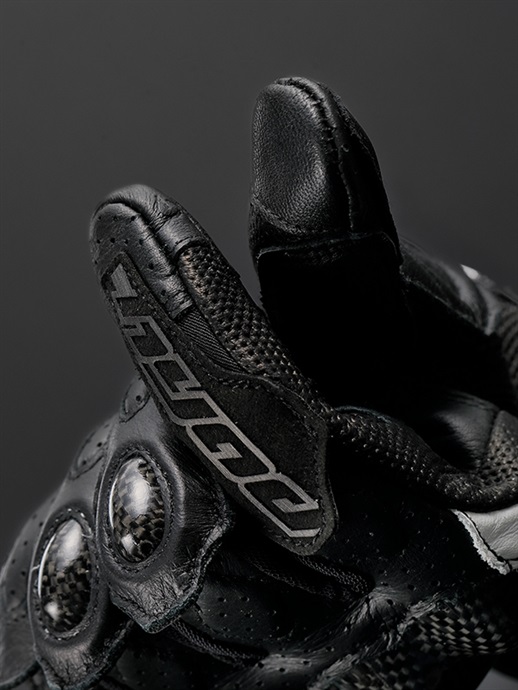 HYODレーシンググローブのノウハウをストリートユースに進化させたパターンを採用しています。指には、指の曲がり指の曲がりを妨げないフローティングタイプのレザーパッチ、さらに中指と薬指にはカーボンプロテクターを取り付けています。