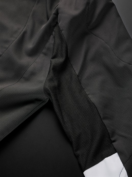 肩・肘・背中のプロテクター用インナーポケットに、別売オプションのD3O®プロテクター(肩・肘・脊椎)を装備して、ハイスペックな安全性能をプラスすることができます。またインナーにプロテクトシャツなどのプロテクトギアを着用してからウチミズJACを着用するのも、快適さと安全性を両立したスマートなレイヤリングの方法です。