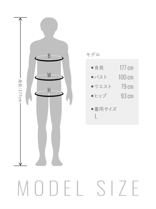 ※上記のSIZE TABLEは製品の実寸法ではなく、各サイズ表示に対して基準となる身体のサイズを示しています。 また、上記のサイズは目安ですので、体型によっては異なる場合があります。