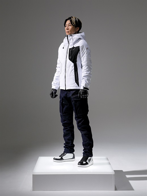 ジャケットの下に身につけるエアバッグウエア“AIR-BOOST”。日本人専用設計で、安全性能をアップグレードできます。